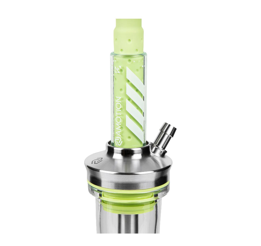Amotion ha lanzado al mercado su primera cachimba de mayor tamaño con la FUTR. Tras llamar la atención inicialmente con su cachimba de viaje Roam, ahora han conseguido ganarse a un público más amplio con su segunda shisha. Muchos describen el comportamiento al fumar de la cachimba como excepcionalmente suave, y también tiene un aspecto impresionante, ya que el material suave al tacto familiar de la Roam se encuentra con un diseño gráfico futurista esta vez.