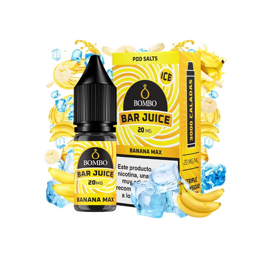 El líquido Banana Max Ice de Bar Juice Nic Salts by Bombo reproduce el sabor puro del plátano. Dulce, cremoso y con un característico toque refrescante que maximiza su sabor intenso.