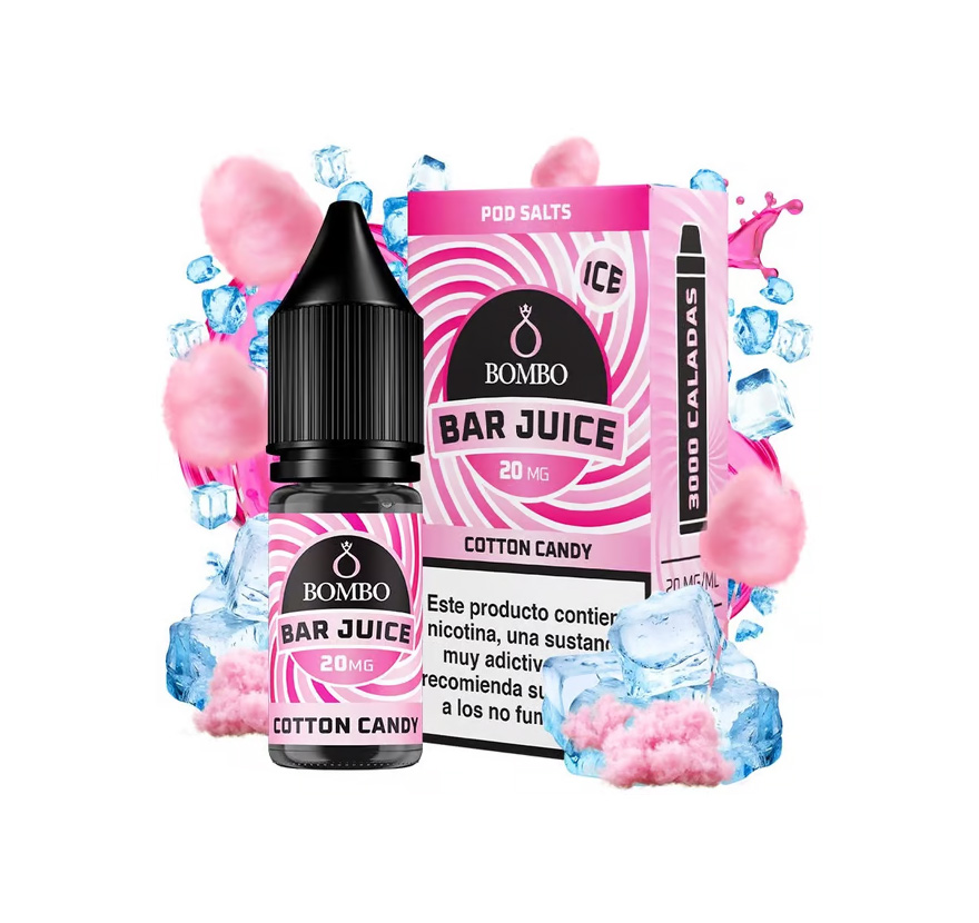 El líquido Cotton Candy Ice de Bar Juice Nic Salts by Bombo sabe al delicioso algodón de azúcar de las ferias. Un e-liquid dulce y esponjoso, con un toque ice de lo más delicioso.