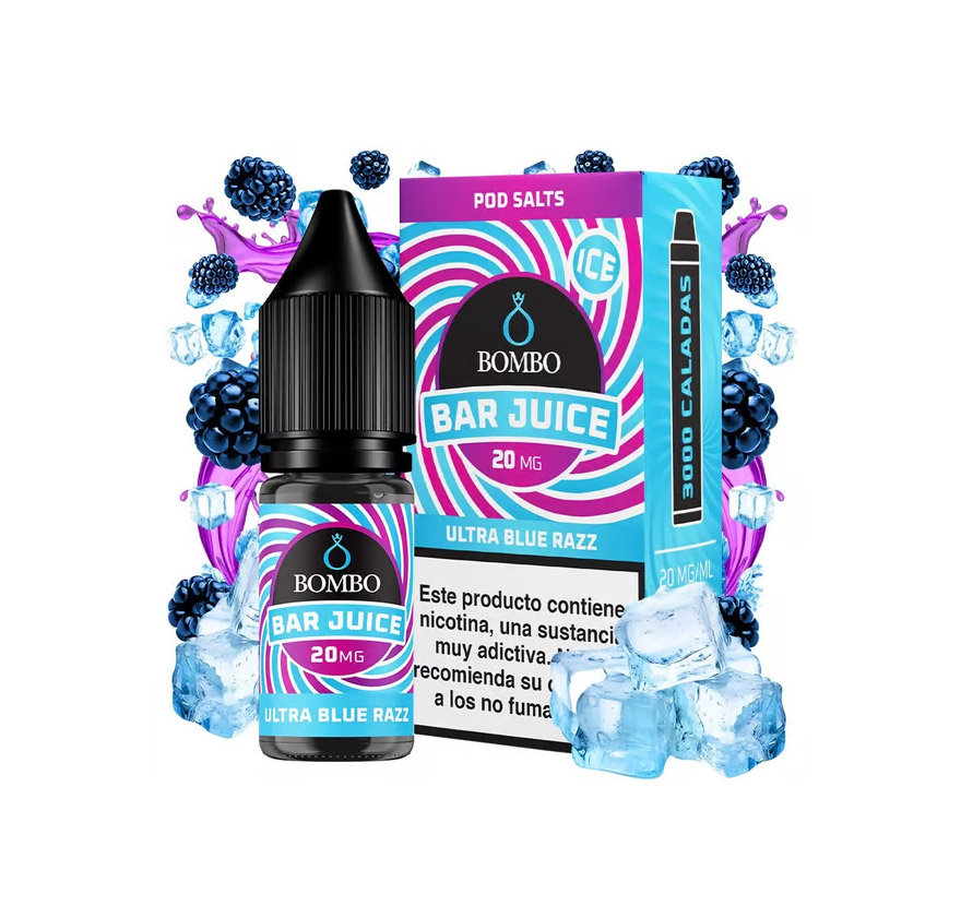 El líquido Ultra Blue Razz Ice de Bar Juice Nic Salts by Bombo sabe a frambuesas azules combinadas con un sutil toque cítrico. Un deliciosa receta en la que Bombo ha logrado una intensidad sin precedentes.