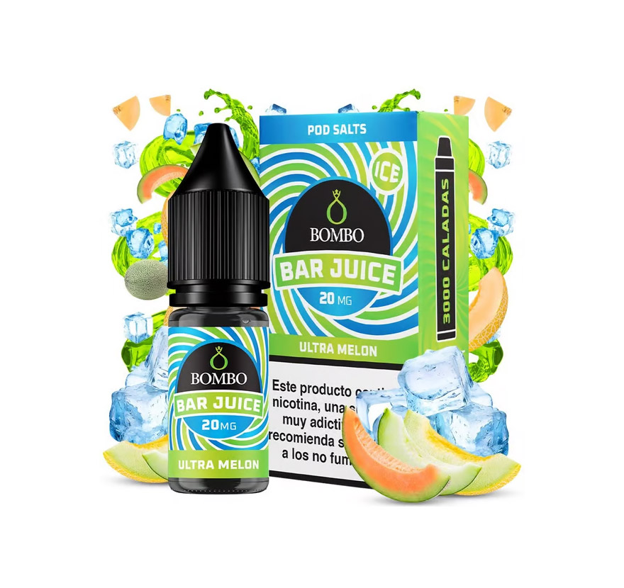 El líquido Ultra Melon Ice de Bar Juice Nic Salts by Bombo ofrece el sabor de melón definitivo, destacando su dulzura y jugosidad. Un sabor ultra intenso que te hará la boca agua.