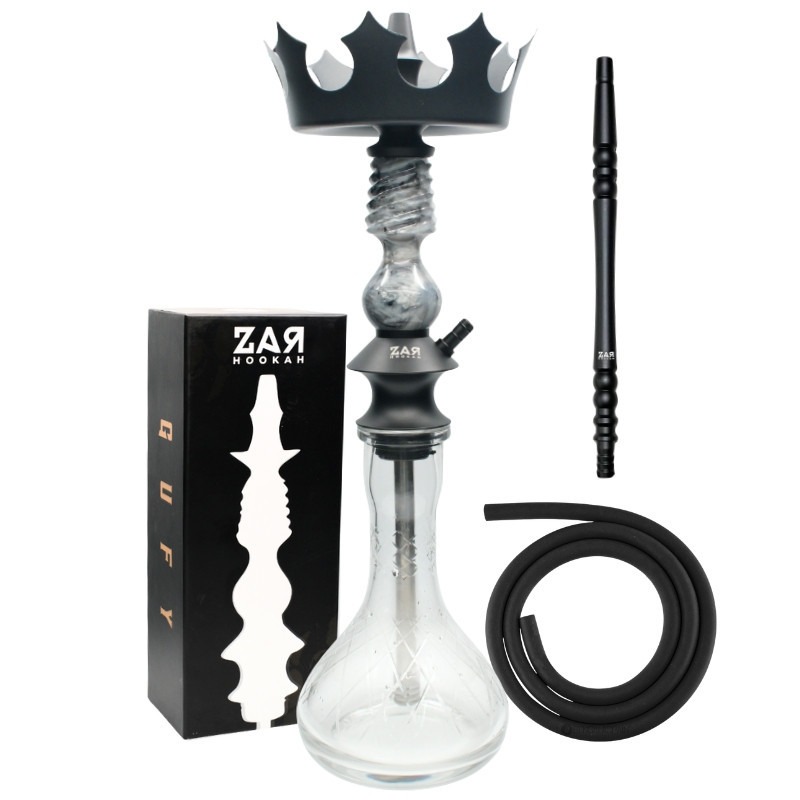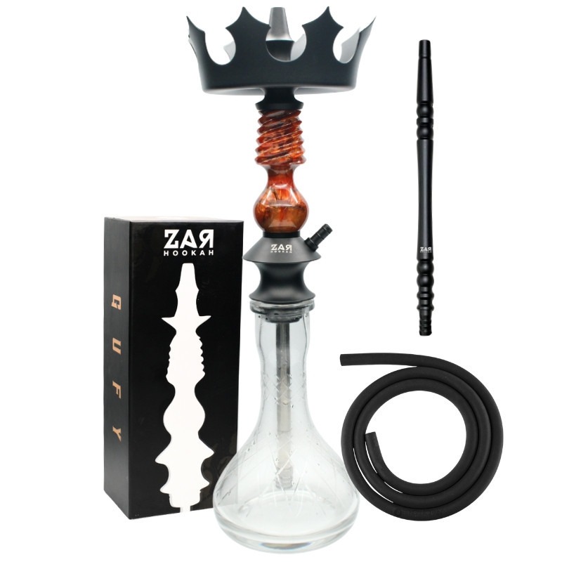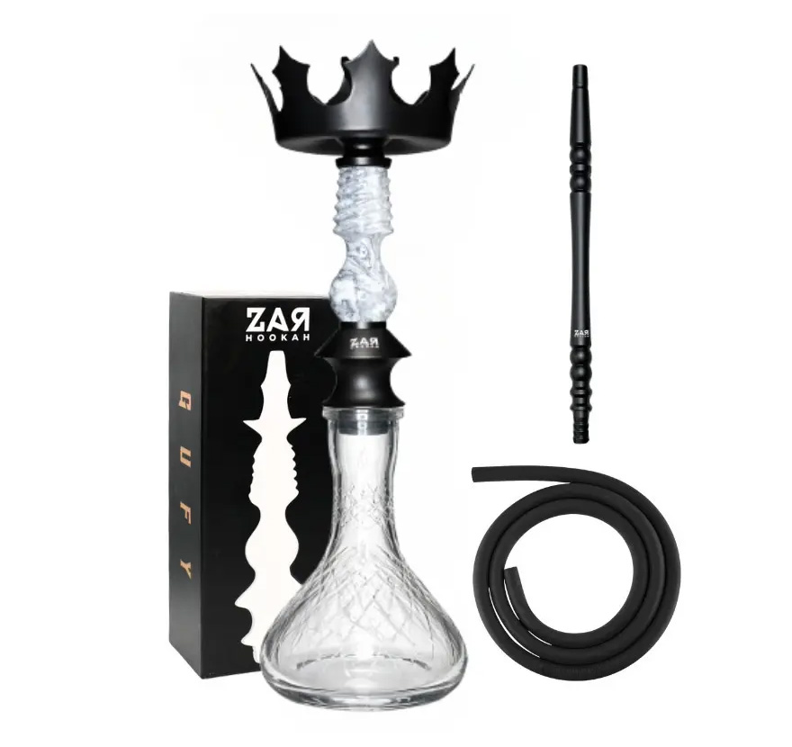 Lo que hace a la Zar Gufy verdaderamente única es su mástil: una espectacular pieza de resina epoxi que se distingue por su patrón. Tonos profundos hacen que cada una de ellas sea distinta. No hay dos iguales, y ese detalle convierte a cada Zar Gufy en una creación de coleccionista. El cuerpo completo está fabricado en acero inoxidable de alta calidad: robusto, limpio y duradero. La base, tallada en cristal, añade un toque de distinción. Su purga integrada ofrece una salida de humo rápida y sin fugas. El difusor es desmontable, lo que te permite ajustar la experiencia a tu gusto: desde un tiro más suave y silencioso hasta un tiro más contundente y robusto.
